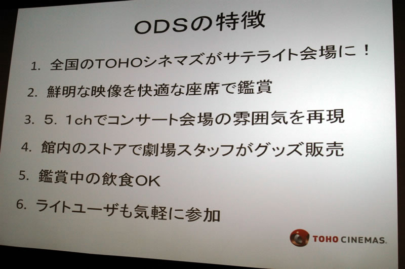 HOME > ニュース > AV&ホームシアターニュース 海外事例や3Dにも言及 映画館で映画以外のコンテンツを上映する「ODS」勉強会が開催 - 関係者がビジネスの可能性を語る ファイル・ウェブ編集部 2010年06月17日 前の写真へ ODSの特徴 前の写真へ この写真の記事へ 関連リンク ミュージックエアポート TOHOシネマズ