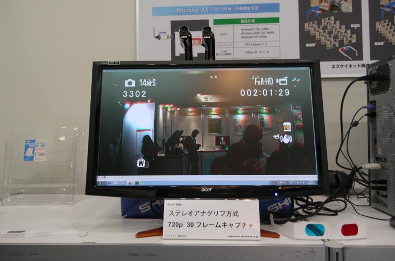 HOME > ニュース > AV&ホームシアターニュース ユニークな製品が多数登場 <3D&VR展>約3万円のポータブル3Dビデオカメラ登場/通常3D映像を裸眼立体視映像に変換するSTB ファイル・ウェブ編集部 2010年06月24日 次の写真へ 2台のカメラで撮影した映像を「Monster XX」でアナグリフ方式の3D表示させるデモ 次の写真へ この写真の記事へ 関連リンク 第18回 3D&バーチャルリアリティ展