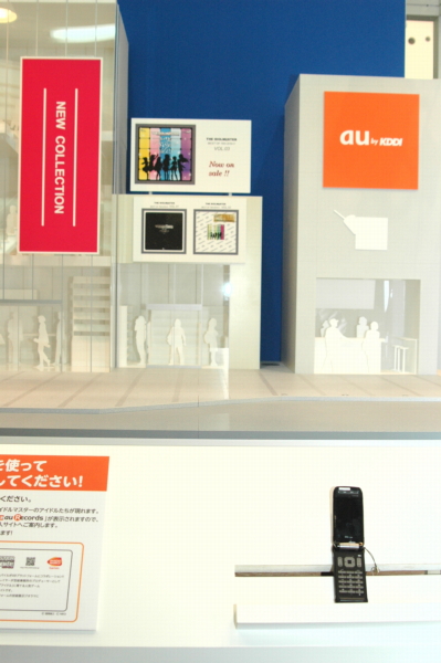 KDDIのデモスペース。矩形のCDジャケットや看板が用意されている