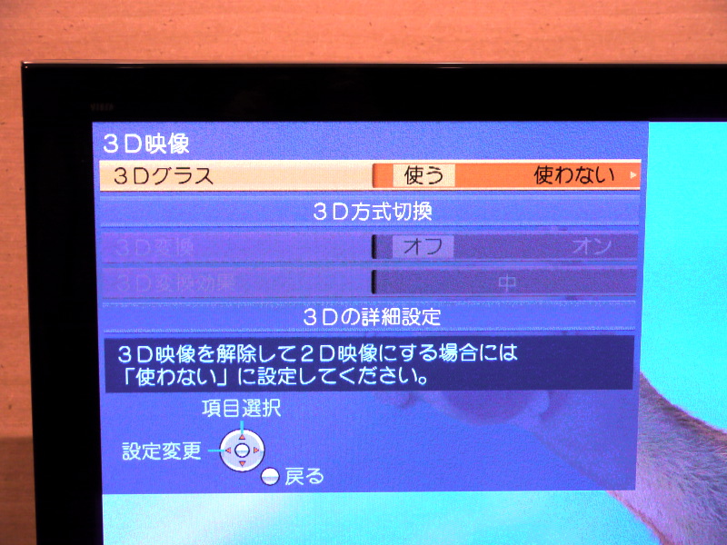 3D映像の設定画面