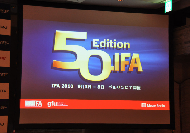 HOME > ニュース > AV&ホームシアターニュース 第50回アニバーサリーイヤーのIFA開催間近 「IFA2010はかつてないほど強力でグローバルなイベントに」 − メッセ・ベルリン社ハイテッカー氏が来日会見 ファイル・ウェブ編集部 2010年07月22日 前の写真へ 今年は第50回目の開催となるアニバーサリーイヤーを迎える 前の写真へ この写真の記事へ 関連リンク IFA2010日本語サイト