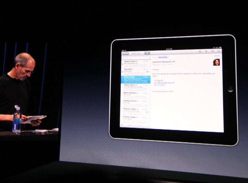 iOS 4.2搭載のiPadのデモ。メールのスレッドまとめなどが可能になる