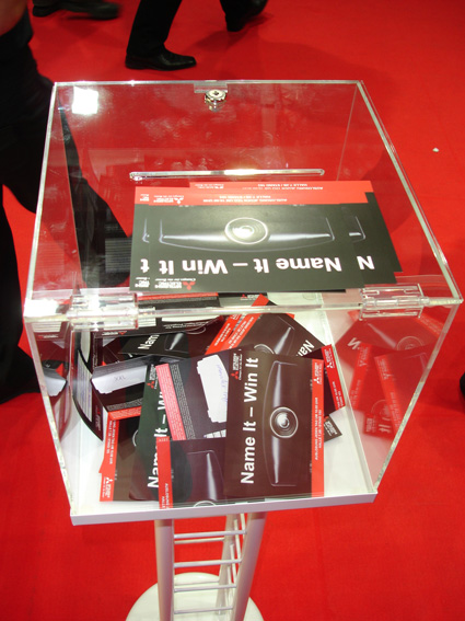 HOME > ニュース > AV&ホームシアターニュース 噂のモデルがついに登場 <IFA2010>三菱電機の3D対応新SXRDプロジェクターが参考展示 − 日本での発売時期は未定 AVレビュー編集部・西山 巨 2010年09月04日 前の写真へ 会場来場者に愛称を募るボックスを設置している 前の写真へ この写真の記事へ 関連リンク IFA2010日本語サイト IFA2010 レポート一覧