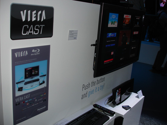 複数のパナソニックAV機器をリンクさせ、ビデオ・オン・デマンドその他の配信コンテンツが視聴できる「VIERA CAST」のデモンストレーション。skype、youtube、bloomberg television、euronews、eurosport等が試聴できることをアピール