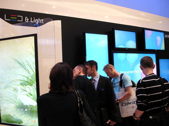 HOME > ニュース > AV&ホームシアターニュース 3Dプロジェクターもこっそり(?)披露 <IFA2010>サムスンのタブレット端末「Galaxy Tab」に熱視線 AVレビュー編集部:西山 巨 2010年09月05日 前の写真へ 次の写真へ ショッピングモールやレストランでの使用を想定した「LFD」タイプのディスプレイ 前の写真へ 次の写真へ この写真の記事へ 関連リンク IFA2010日本語サイト IFA2010 レポート一覧