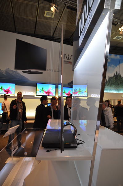 HOME > ニュース > AV&ホームシアターニュース CES出展の3Dプロジェクターも試写 <IFA2010>LGがベゼル厚1.25cmのスリムなLED液晶テレビ「LEX8」を展示 − 31インチ3D有機ELも ファイル・ウェブ編集部・山本敦 2010年09月06日 前の写真へ 次の写真へ LEX8を横から見たところ 前の写真へ 次の写真へ この写真の記事へ 関連リンク IFA2010日本語サイト IFA2010 レポート一覧