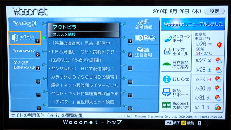 - 日立、DLNA/ネット動画対応のエントリー機“Wooo”H05シリーズ 2010/03/15