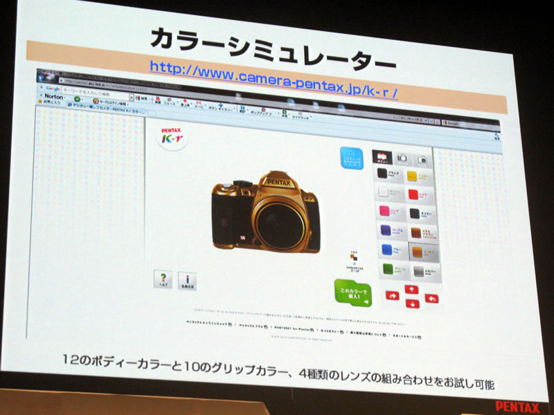 HOME > ニュース > AV&ホームシアターニュース 秒間6コマ連写など機能面も充実 ペンタックス、120通りのカラバリが可能なデジタル一眼レフカメラ「K-r」を発売 ファイル・ウェブ編集部 2010年09月09日 前の写真へ 公式サイトでは組み合わせをシミュレートすることも可能 前の写真へ この写真の記事へ 関連リンク ペンタックス オーダーカラー受注サービスの詳細