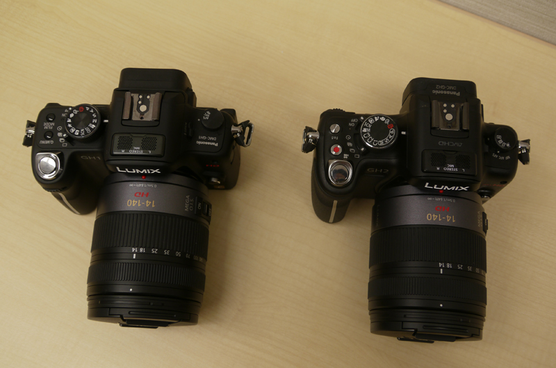 左がDMC-GH1。DMC-GH2はムービー撮影ボタンが上部に設けられるなどの変更が加えられている