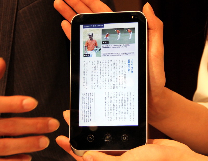 HOME > ニュース > AV&ホームシアターニュース サービス第1弾は電子書籍ストア 「GALAPAGOS」で世界へ − シャープ、タブレット型端末を12月に発売 ファイル・ウェブ編集部 2010年09月27日 前の写真へ 次の写真へ 本文の文字フォントを小さくした時の表示イメージ 前の写真へ 次の写真へ この写真の記事へ 関連リンク シャープ「GALAPAGOS」特設サイト シャープ 本件のニュースリリース