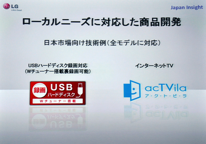 日本市場のニーズに合わせてUSB HDD録画機能やアクトビラ対応を盛り込んだ