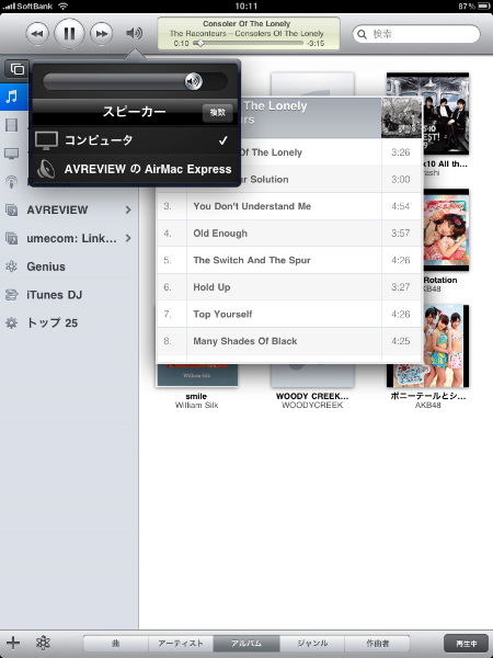 HOME > ニュース > AV&ホームシアターニュース 共有ライブラリ内の楽曲再生も可能に アップル、iPadや新Apple TVに対応した「Remote」バージョン2.0をリリース ファイル・ウェブ編集部 2010年09月29日 前の写真へ スピーカーのアイコンをタップすると複数のスピーカーのオン/オフ、ボリュームを個別に調整できる 前の写真へ この写真の記事へ 関連リンク アップル 「Remote」の詳細