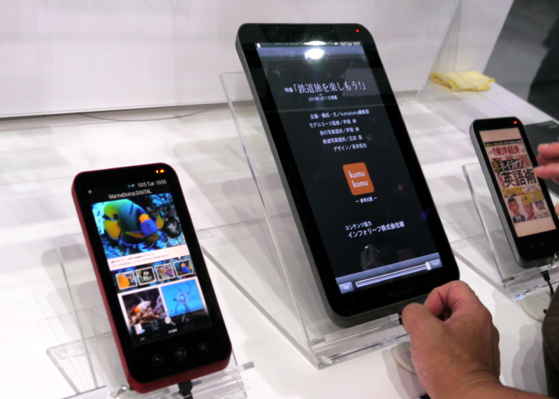 HOME > ニュース > AV&ホームシアターニュース スペックはまだ非公開 【CEATEC】噂のタブレット型端末「GALAPAGOS」に触ってきた ファイル・ウェブ編集部 2010年10月05日 次の写真へ CEATECのシャープブースに置かれた「GALAPAGOS」。左が5.5型、右が10.8型 次の写真へ この写真の記事へ 関連リンク シャープ CEATEC 関連記事一覧 CEATEC公式サイト