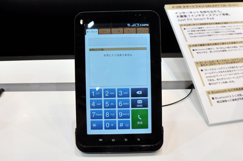 HOME > ニュース > AV&ホームシアターニュース 実機のファーストインプレッションも掲載 【CEATEC】ドコモ、「GALAXY S」と「GALAXY Tab」の実機を早速披露 − タッチアップブースは黒山の人だかり ファイル・ウェブ編集部:小澤麻実 2010年10月05日 前の写真へ 次の写真へ 電話機能ももちろん搭載。キーパッド、履歴、電話帳などが使いやすくまとめられている 前の写真へ 次の写真へ この写真の記事へ 関連リンク 本製品のニュースリリース CEATEC 関連記事一覧 CEATEC公式サイト