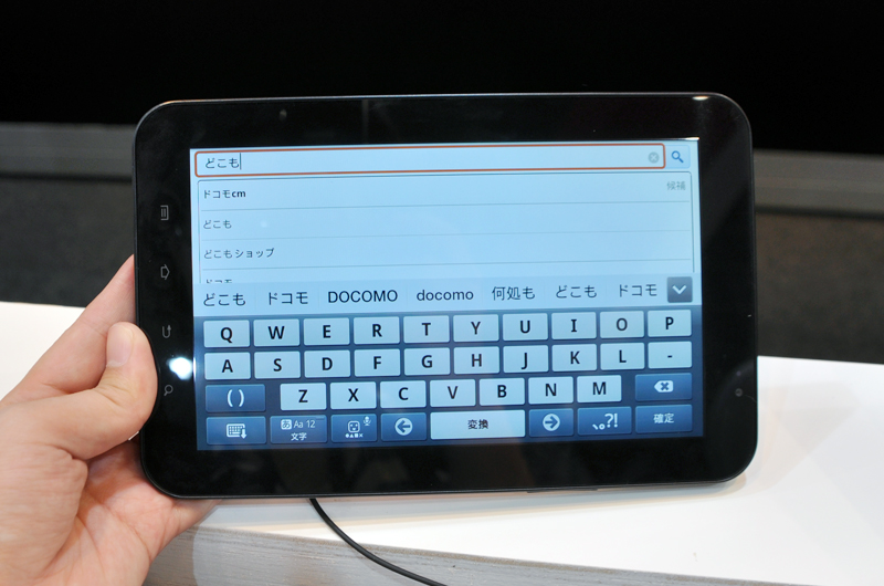 HOME > ニュース > AV&ホームシアターニュース 実機のファーストインプレッションも掲載 【CEATEC】ドコモ、「GALAXY S」と「GALAXY Tab」の実機を早速披露 − タッチアップブースは黒山の人だかり ファイル・ウェブ編集部:小澤麻実 2010年10月05日 前の写真へ ソフトウェアキーボードは押した感覚が振動で伝わる機能も備えている 前の写真へ この写真の記事へ 関連リンク 本製品のニュースリリース CEATEC 関連記事一覧 CEATEC公式サイト