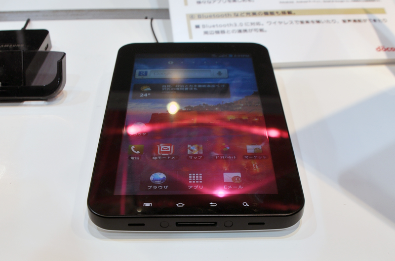 HOME > ニュース > AV&ホームシアターニュース 実機のファーストインプレッションも掲載 【CEATEC】ドコモ、「GALAXY S」と「GALAXY Tab」の実機を早速披露 − タッチアップブースは黒山の人だかり ファイル・ウェブ編集部:小澤麻実 2010年10月05日 前の写真へ 次の写真へ ”GALAXY Tab”の下部 前の写真へ 次の写真へ この写真の記事へ 関連リンク 本製品のニュースリリース CEATEC 関連記事一覧 CEATEC公式サイト
