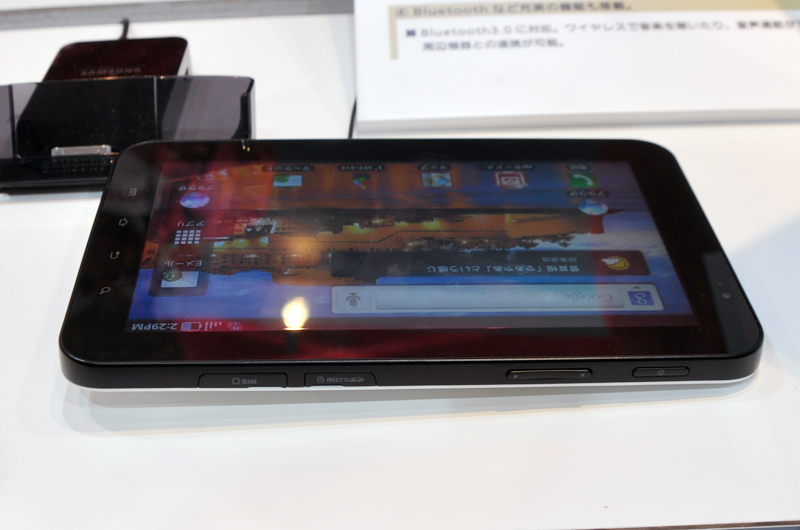 HOME > ニュース > AV&ホームシアターニュース 実機のファーストインプレッションも掲載 【CEATEC】ドコモ、「GALAXY S」と「GALAXY Tab」の実機を早速披露 − タッチアップブースは黒山の人だかり ファイル・ウェブ編集部:小澤麻実 2010年10月05日 前の写真へ 次の写真へ 右サイドにはSIMスロットやmicroSDスロットなどを備える 前の写真へ 次の写真へ この写真の記事へ 関連リンク 本製品のニュースリリース CEATEC 関連記事一覧 CEATEC公式サイト