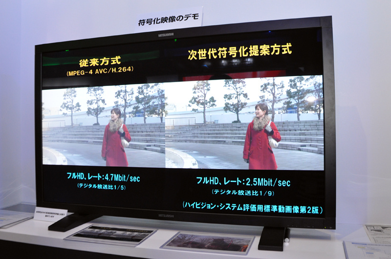 HOME > ニュース > AV&ホームシアターニュース 3Dプロジェクターは日本では発売未定 【CEATEC】三菱、“REAL 3D”を大きく訴求 − シアタールームでは3Dプロジェクターの映像を披露 ファイル・ウェブ編集部 2010年10月06日 前の写真へ 新しい符号化技術では、ビットレートは半分なのに映像が綺麗なことがよく分かる 前の写真へ この写真の記事へ 関連リンク CEATEC 関連記事一覧 CEATEC公式サイト