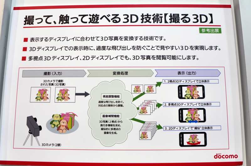 HOME > ニュース > AV&ホームシアターニュース 充電台に置くだけの「ワイヤレス充電」技術も 【CEATEC】ドコモ、“触れる”3Dディスプレイや2Dディスプレイで3D写真を楽しめる技術などを展示 ファイル・ウェブ編集部 2010年10月06日 前の写真へ 次の写真へ 撮って触って遊べる3D技術の詳細 前の写真へ 次の写真へ この写真の記事へ 関連リンク CEATEC 関連記事一覧 CEATEC公式サイト