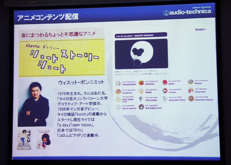 オーディオテクニカHPに公開されているウィスット・ポンニミット氏のアニメーション