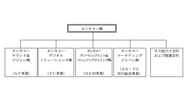 HOME > ニュース > AV&ホームシアターニュース 12月1日から オンキヨー、組織再編の詳細を発表 − AV事業は「オンキヨー サウンド&ビジョン株式会社」に ファイル・ウェブ編集部 2010年10月28日 グループ再編後のイメージ この写真の記事へ 関連リンク 本件のニュースリリース(PDF) オンキヨー