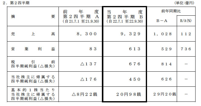 HOME > ニュース > AV&ホームシアターニュース 家庭電器事業は黒字化を達成 三菱電機、2010年度第2四半期の業績を発表 − 営業利益は前年同期比736%増の613億円 ファイル・ウェブ編集部 2010年10月29日 この写真の記事へ 関連リンク 本件の詳細(PDF)