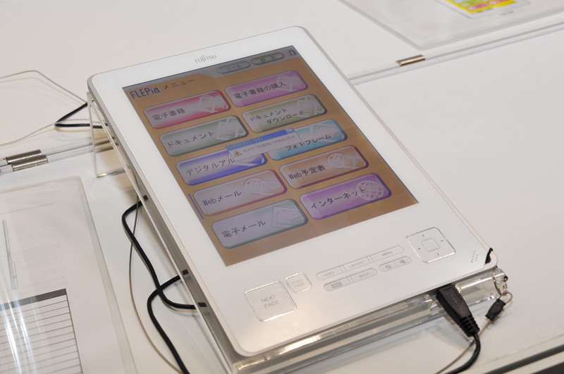 富士通はコレステリック液晶を採用したカラー表示対応の電子情報端末「FLEPia Lite」を参考展示