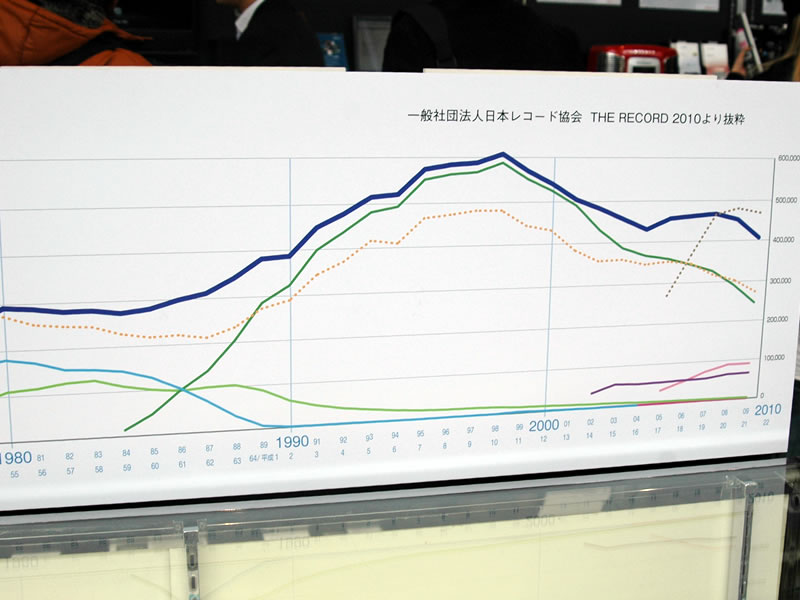 HOME > ニュース > AV&ホームシアターニュース 懐かしの製品展示や音楽ソフト売上推移グラフも 【音展】ネットワーク対応機など各社から「第3世代オーディオ」が集合 ファイル・ウェブ編集部 2010年11月21日 前の写真へ 音楽ソフトの売上推移グラフ 前の写真へ この写真の記事へ 関連リンク オーディオ&ホームシアター展TOKYO 2010 音展の関連記事一覧