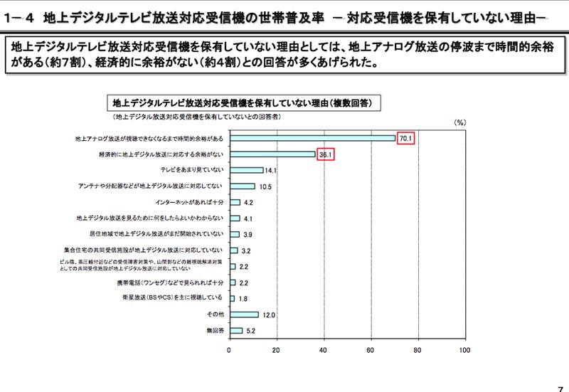 地デジ対応受信機器の世帯普及率は90.3%に − 対応予定も含めると約98%が停波までに地デジ対応見込み