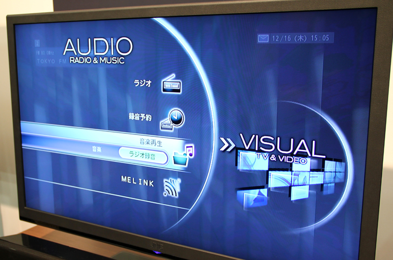 オーディオのメインメニュー。右写真を見ると分かるように、ビジュアルのメインメニューと対称になっている