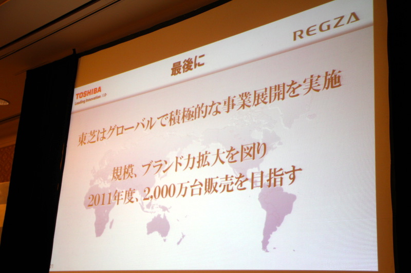 HOME > ニュース > AV&ホームシアターニュース CES出展内容も紹介 【更新】東芝、40V型以上の裸眼3Dテレビを11年度に国内発売 − 「CEVOエンジン」で2D映像も4K2K表示 ファイル・ウェブ編集部 2011年01月05日 前の写真へ 2011年度は2,000万台のテレビ販売を目標にする 前の写真へ この写真の記事へ 関連リンク 東芝 2011 International CES 2011 International CESレポート一覧