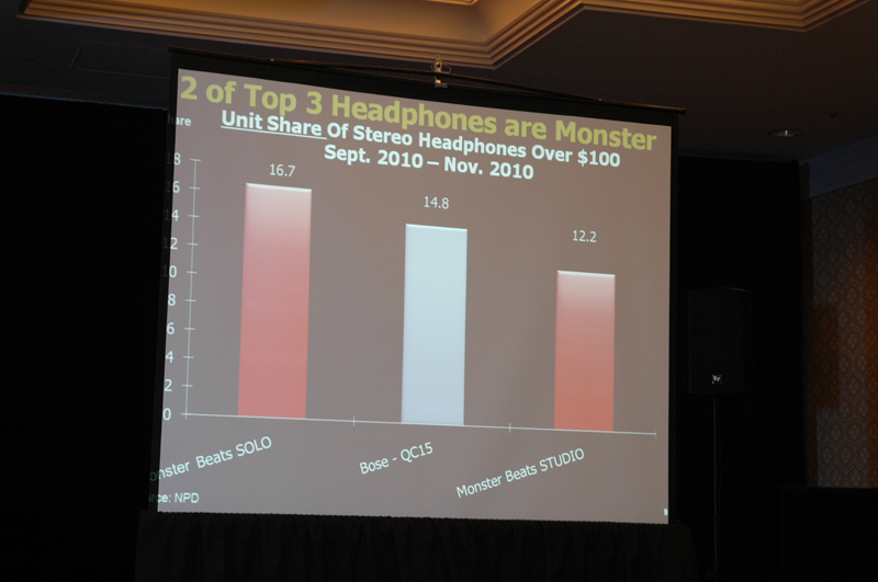 HOME > ニュース > AV&ホームシアターニュース 「トロン:レガシー」とのコラボヘッドホンなど 【CES】モンスター、最新ヘッドホンやHDMIケーブルなどを発表 − 多角的な製品を展開 季刊オーディオアクセサリー編集部・浅田 2011年01月06日 前の写真へ 次の写真へ 米国内における$100以上のヘッドホン売上ランキングで上位3モデルのうち2モデルがモンスターの製品だという 前の写真へ 次の写真へ この写真の記事へ 関連リンク 2011 International CES 2011 International CESレポート一覧