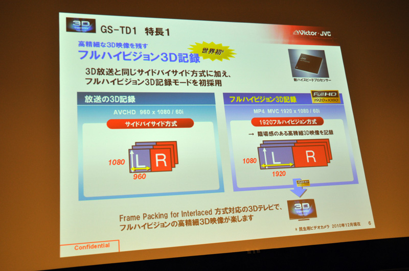 ビクター、フルHD 3D撮影対応のビデオカメラ“Everio”「GS-TD1」を発売