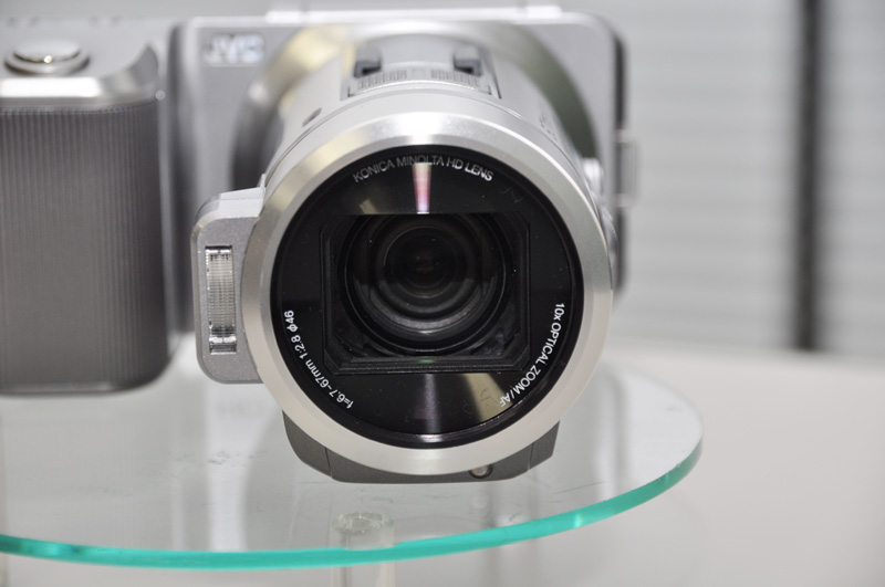 光学10倍ズーム対応のコニカミノルタHDレンズを採用。レンズのボディ内でズーム動作をする構造となっている