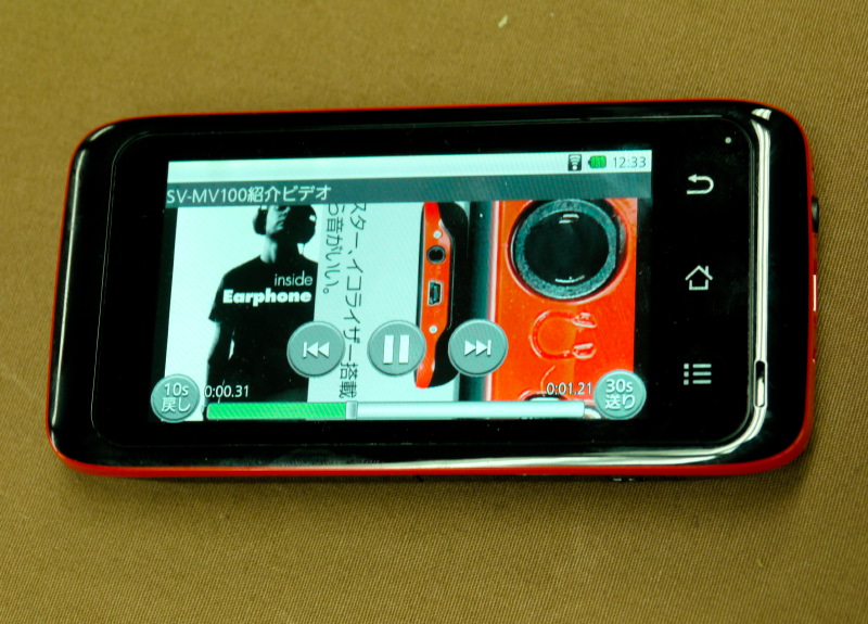 動画再生時の画面。「30秒送り」「10秒戻し」機能を用意