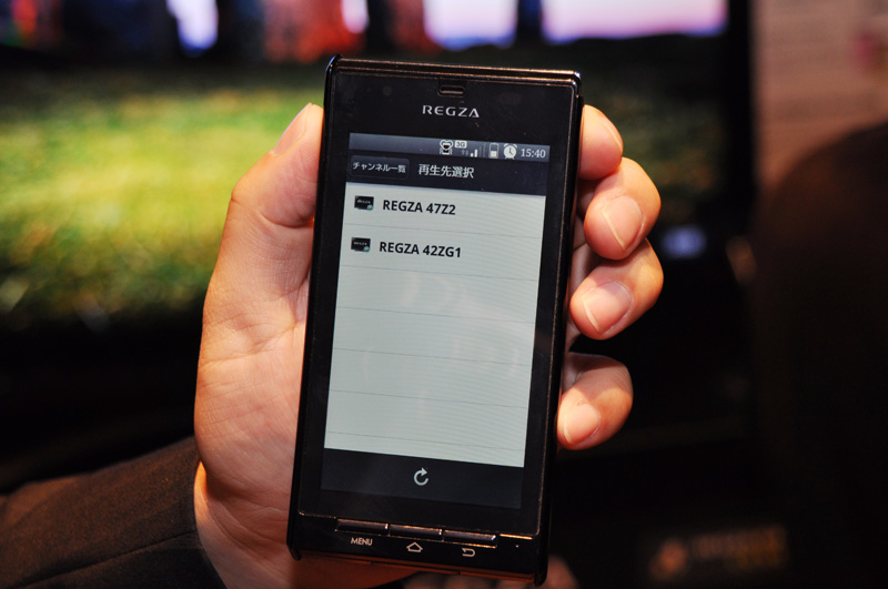ネットワーク上のレンダラー機能(DMR)を搭載した液晶テレビ「レグザ」を選択