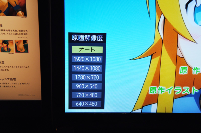 アプコン前のオリジナル映像に最適化した処理が行われる。デフォルトはオートに設定されている