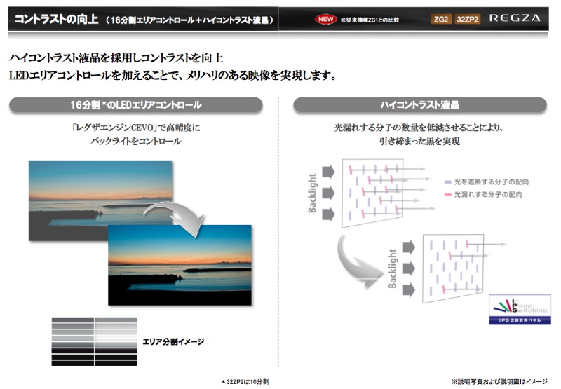 32V型は光漏れする分子の数量を低減させた「ハイコントラスト液晶」を採用