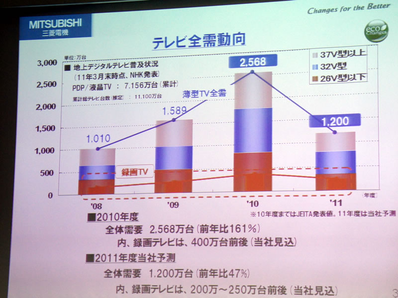 エコポイントの影響などで2010年度はテレビ売上が大きく伸張