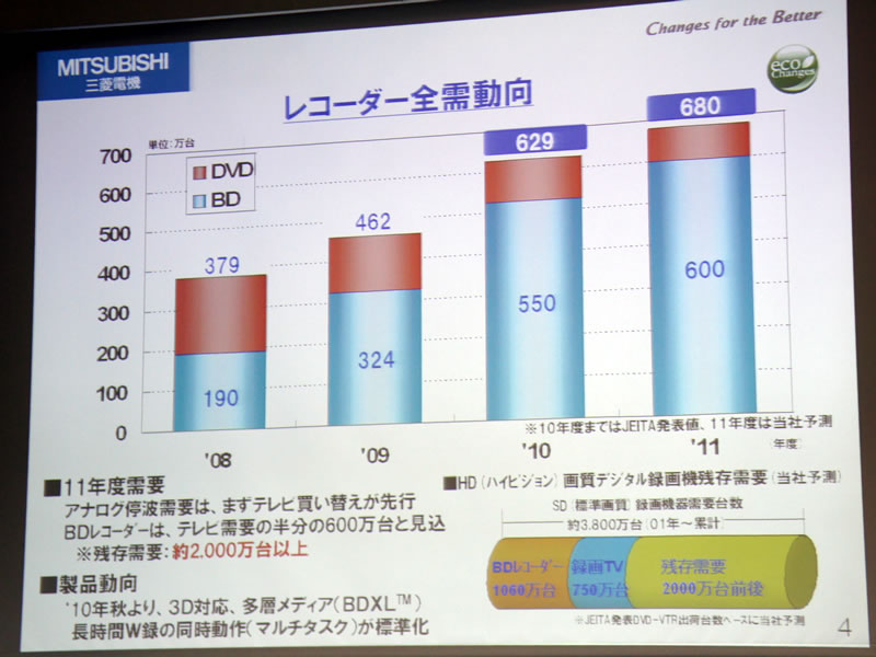 2011年度のレコーダー需要は600万台程度と予測