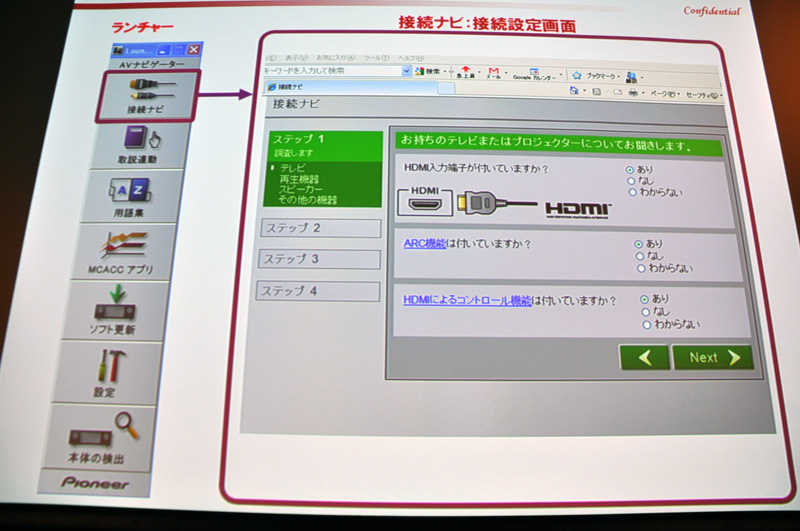 HOME > ニュース > AV&ホームシアターニュース どこよりも早いクオリティチェック付き 【レビュー有】パイオニア、AirPlay/ネットオーディオ/iOSアプリ操作対応のAVアンプ「VSA-1021」など3機種を発売 ファイル・ウェブ編集部 2011年04月26日 前の写真へ 次の写真へ 質問に答えていくと最適な配線方法を図解してくれる 前の写真へ 次の写真へ この写真の記事へ 関連リンク パイオニア AVアンプ製品情報ページ パイオニアの製品レビュー満載「パイオニア・エンサイクロペディア」