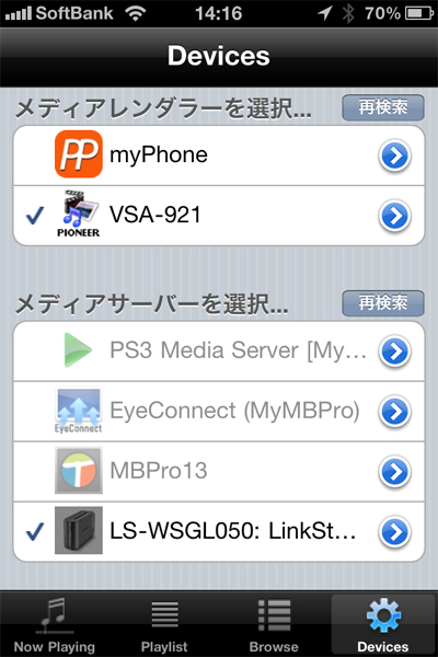 HOME > ニュース > AV&ホームシアターニュース どこよりも早いクオリティチェック付き 【レビュー有】パイオニア、AirPlay/ネットオーディオ/iOSアプリ操作対応のAVアンプ「VSA-1021」など3機種を発売 ファイル・ウェブ編集部 2011年04月26日 前の写真へ 次の写真へ iOS向けDLNAクライアントアプリ「PlugPlayer」を使い、VSA-921を出力先(メディアレンダラー)に指定したところ 前の写真へ 次の写真へ この写真の記事へ 関連リンク パイオニア AVアンプ製品情報ページ パイオニアの製品レビュー満載「パイオニア・エンサイクロペディア」