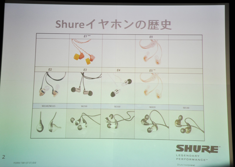 HOME > ニュース > AV&ホームシアターニュース 話題のSE215/SRH940が登場 Shure、モニターヘッドホン&カナル型イヤホン新製品の開発コンセプト説明会を開催 ファイル・ウェブ編集部 2011年04月26日 前の写真へ 次の写真へ Shureイヤホン製品の歴史はイヤーモニター「E1」に始まった 前の写真へ 次の写真へ この写真の記事へ 関連リンク Shure Japan 完実電気のSHURE製品情報