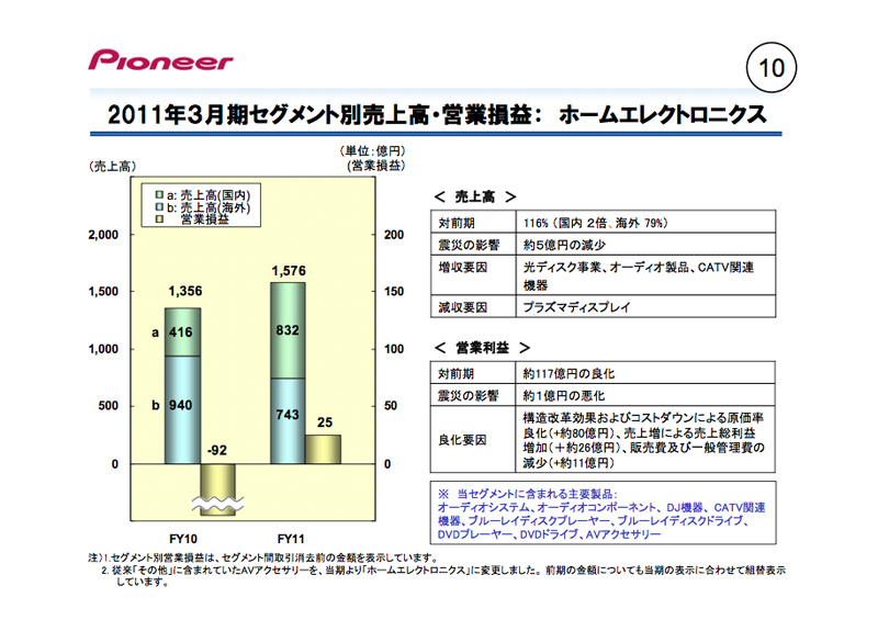 パイオニア、2010年度業績を発表 − 純利益は7期ぶりの黒字転換