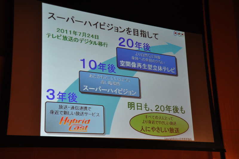 HOME > ニュース > AV&ホームシアターニュース NHK技研公開2011に展示予定 シャープ、8K4Kスーパーハイビジョン対応の85V型液晶ディスプレイを開発 ファイル・ウェブ編集部 2011年05月19日 前の写真へ 次の写真へ デジタル放送進化のロードマップ 前の写真へ 次の写真へ この写真の記事へ 関連リンク NHK放送技術研究所 シャープのニュースリリース