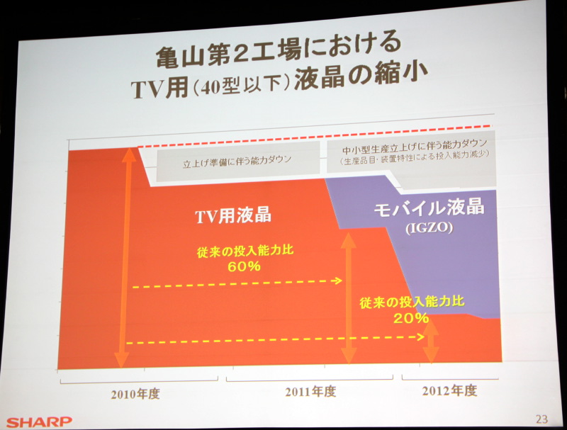 亀山第2工場の今後の生産計画。テレビ向け液晶パネルの生産を段階的に引き下げる