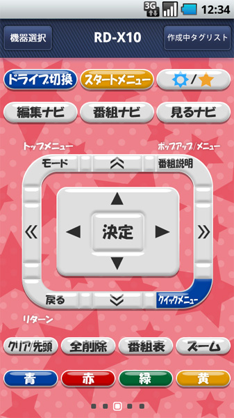 「RZ声優リモ」(Android版)のメインリモコン