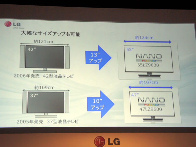 HOME > ニュース > AV&ホームシアターニュース 全面で均一な高輝度や高コントラストを実現 【更新】LG、最薄部0.88cmの液晶テレビ最上位機“NANO FULL LED”「LZ9600」を発売 ファイル・ウェブ編集部 2011年06月15日 前の写真へ 全体のサイズを変えずに画面サイズの大型化が実現 前の写真へ この写真の記事へ 関連リンク LGエレクトロニクス・ジャパン