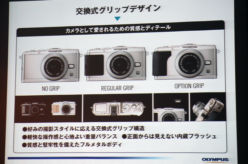 HOME > ニュース > AV&ホームシアターニュース PEN Lite「E-PL3」、超小型・軽量“PEN mini”も登場 オリンパス、“世界最速AF”を実現した「E-P3」などマイクロ一眼カメラ“PEN”新モデルを発表 ファイル・ウェブ編集部 2011年06月30日 前の写真へ グリップは着脱式で交換もできる 前の写真へ この写真の記事へ 関連リンク オリンパス PEN 特集サイト