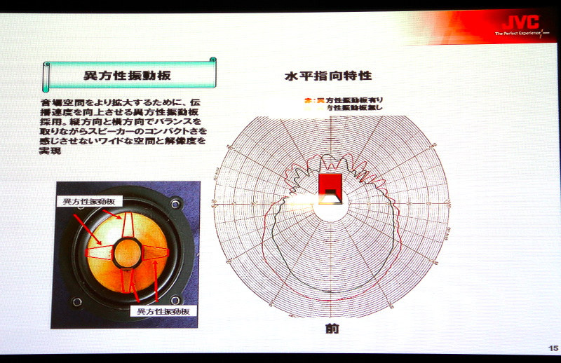 「異方性振動板」を採用したことで水平方向の指向特性が広がった